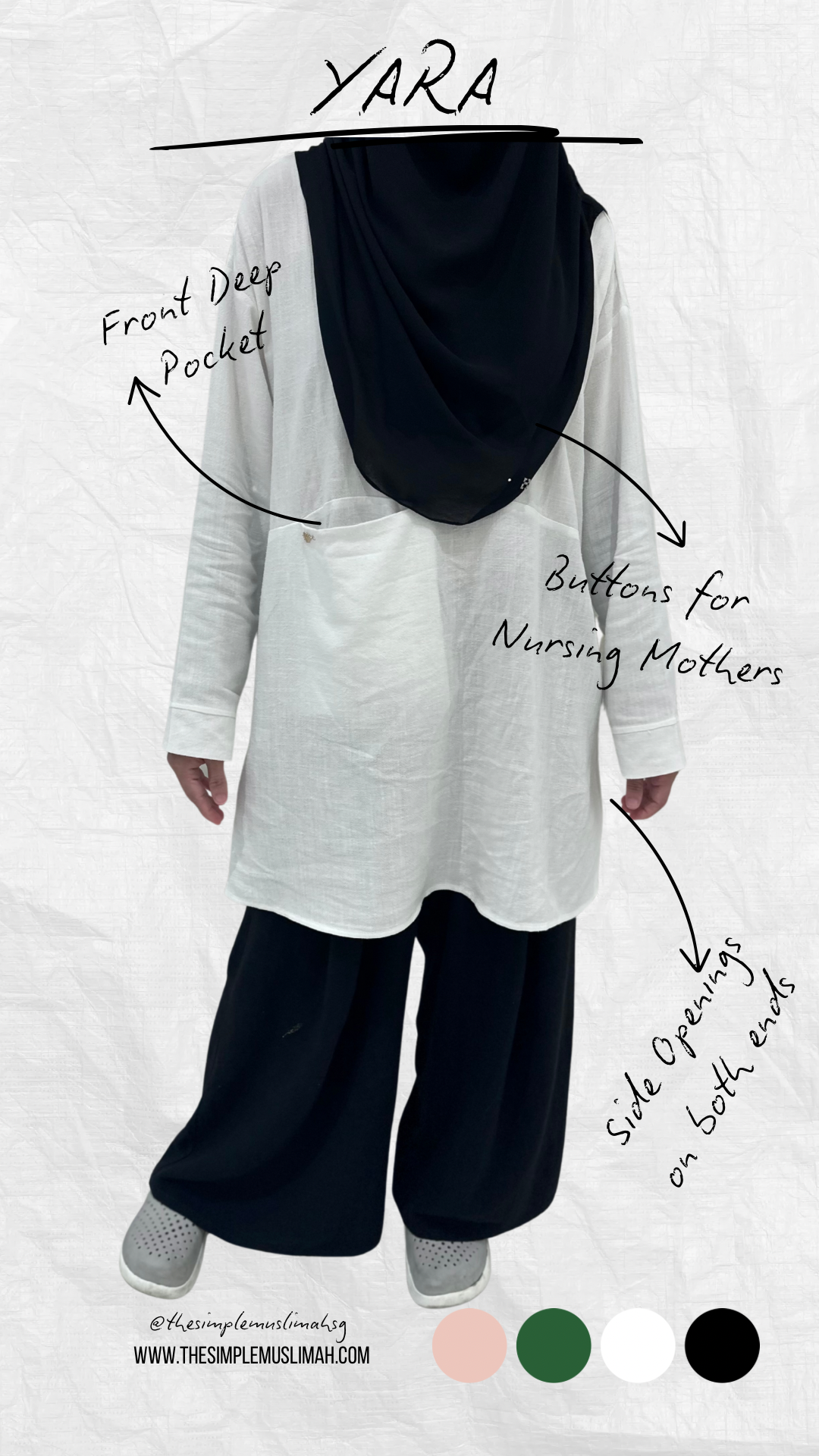 Experience the epitome of luxury with Yara, our exquisitely crafted linen blouse. Perfectly suited for warm weather with its cooling fabric, it boasts a gracefully loose fit and a spacious pocket for added convenience. Complete with buttons for effortless nursing, it embodies both fashion and practicality. Elevate your style with our linen wide pants.